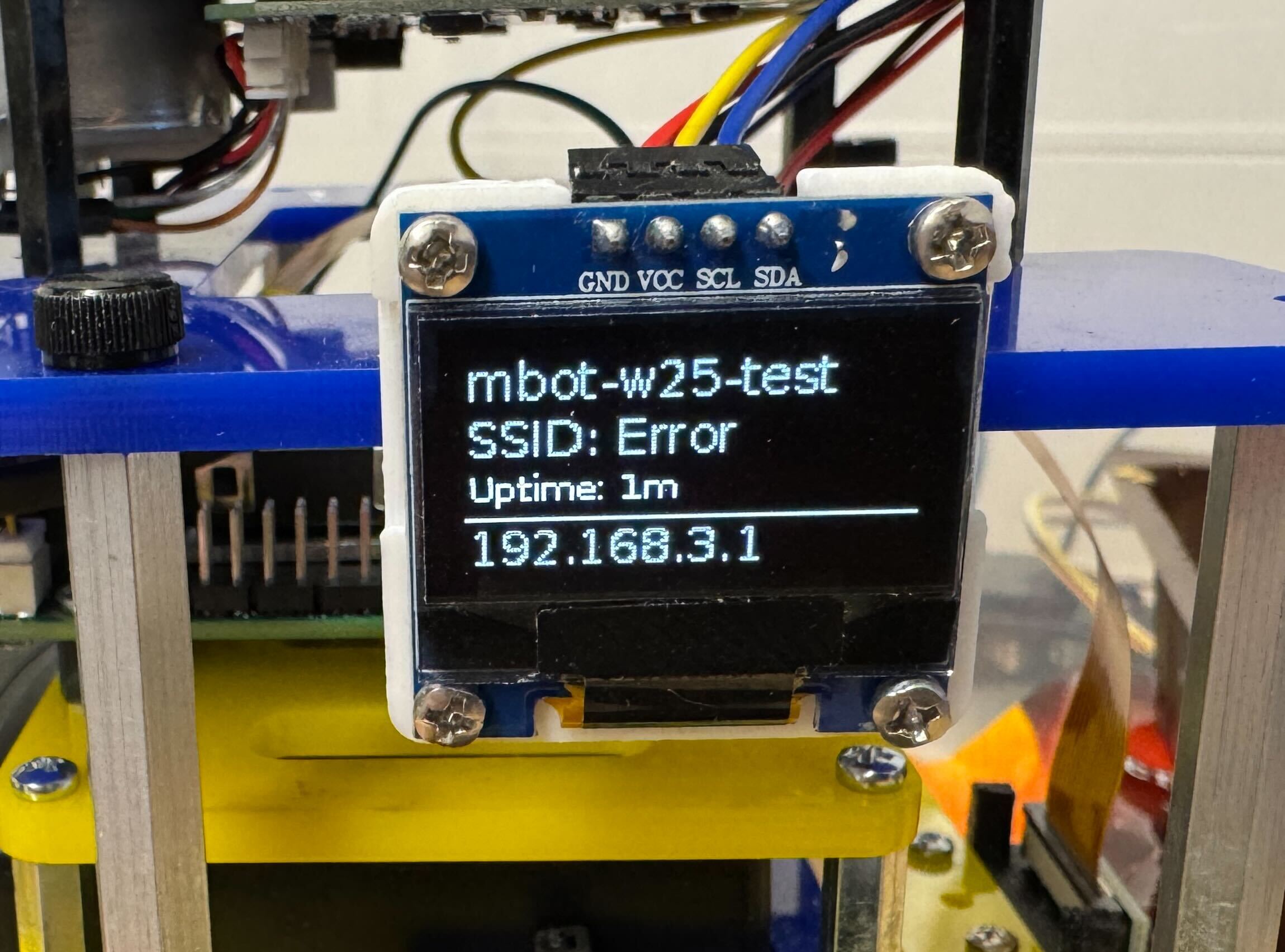 192.168.X.Xto a different one. This indicates that the MBot has successfully connected to the Internet.- If the OLED screen says “IP Not Found” or “Error” and has been that way for over two minutes, you aren’t connected to the network, you might have typo when input the UM account password, find GSIs and ask to connect to an external monitor.